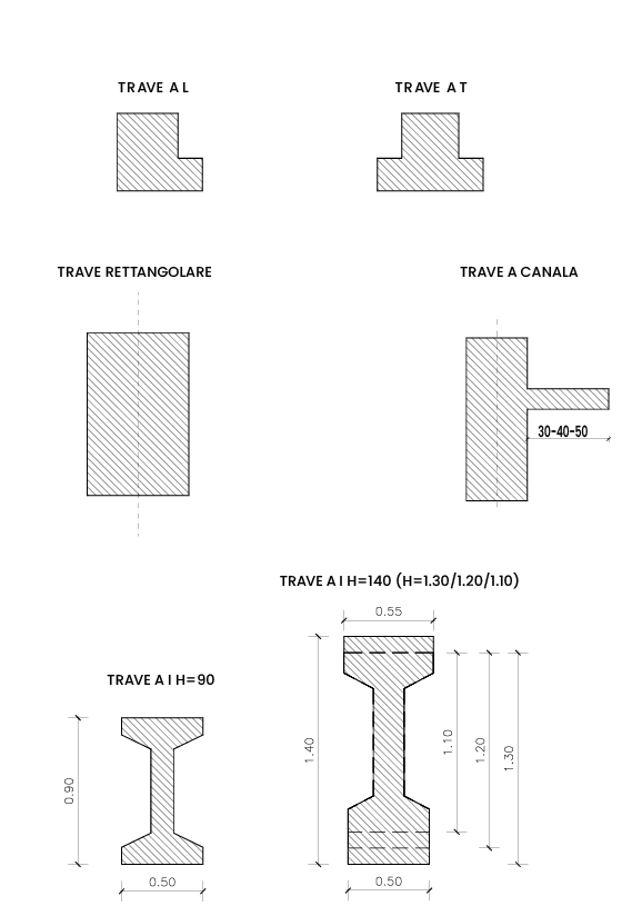 Le travi sono uno degli elementi portanti principali dei telai in cemento armato delle costruzioni prefabbricate. Possono variare in base al loro campo di applicazione, tipologia, interasse pilastri. Il team di Edilesse fornisce varie forme da utilizzare per i principali sistemi di copertura e solai di impalcato: dalle travi tradizionali a “L” o “T rovescio”, principalmente utilizzate per edifici multipiani e solai di impalcato, alle travi per sistemi di copertura, quali travi a canala, rettangolari o ad “I”.